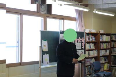 修了式後の離任式では、1人の教職員とお別れしました。椴法華中学校への思いや生徒に対する感謝の意を述べました。